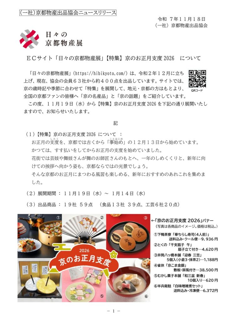 【ニュースリリース】 ECサイト「日々の京都物産展」【特集】京のお正月支度2026について ECサイト「日々の京都物産展」【特集】 ECサイト「日々の京都物産展」【特集】京のお正月支度2026について[PDFファイルでダウンロード]